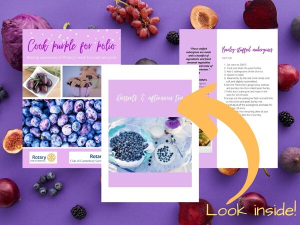 Marking World Polio Day comes in all shapes and sizes. A few years ago we partnered with members of the Rotary Club of Canterbury Sunrise to produce a purple-themed recipe book to help raise awareness of polio and the efforts Rotary has made to help combat the disease.